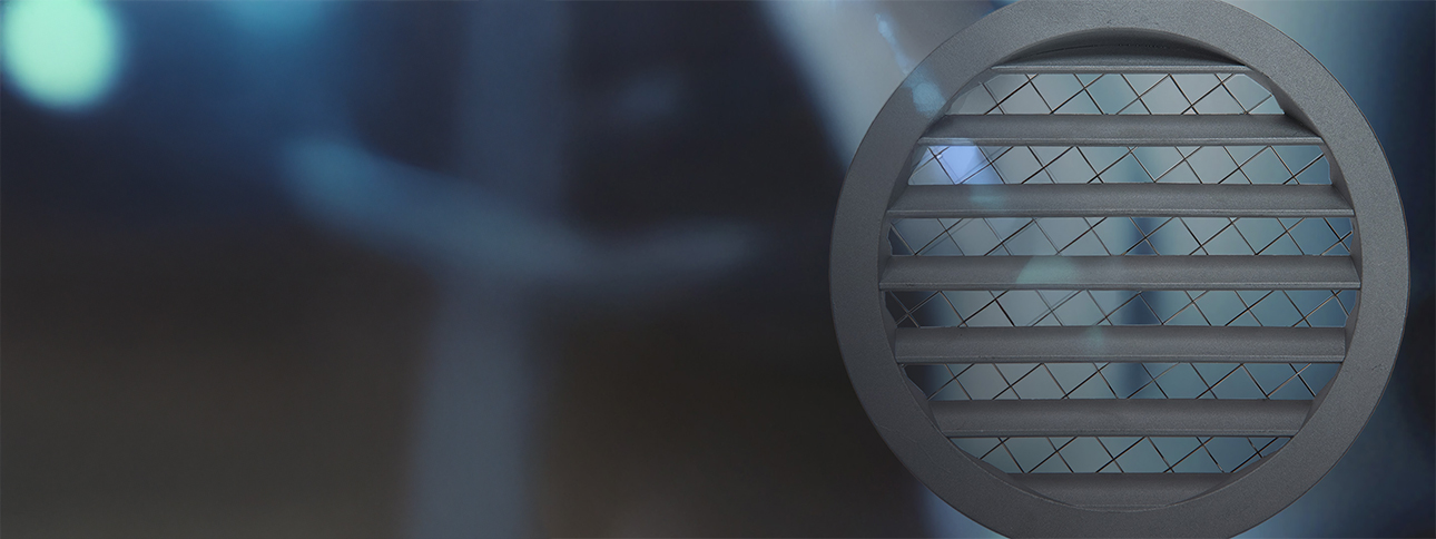 Cirkulärt ytterväggsgaller i gjuten aluminium. Storlek: Ø 80-500 mm