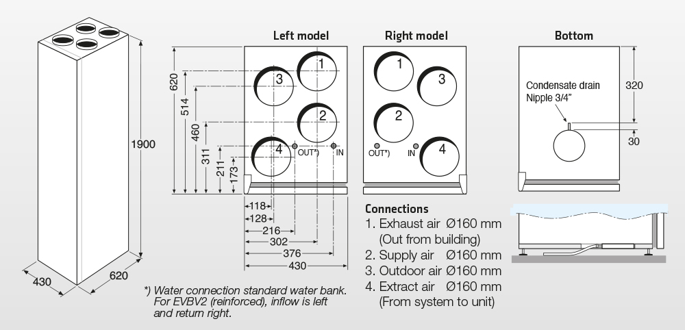| After-heater water coil (reinforced), built-in (incl. 2 way valve and 0-10V actuator) | EVBV2 |