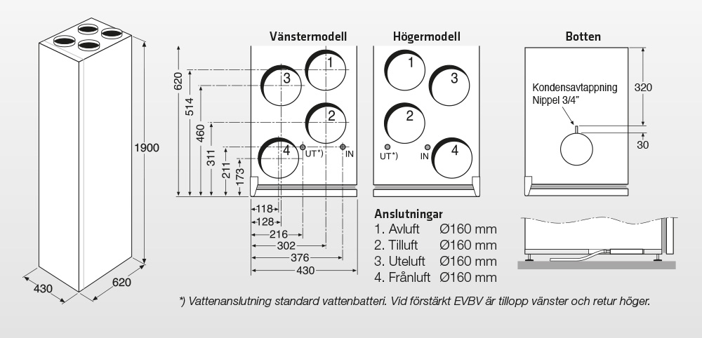 Kanalanslutningar 4 x Ø160 mm