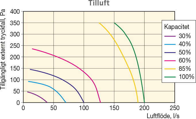 | Märkeffekt eftervärmare | 2300 W vid 150 l/s |